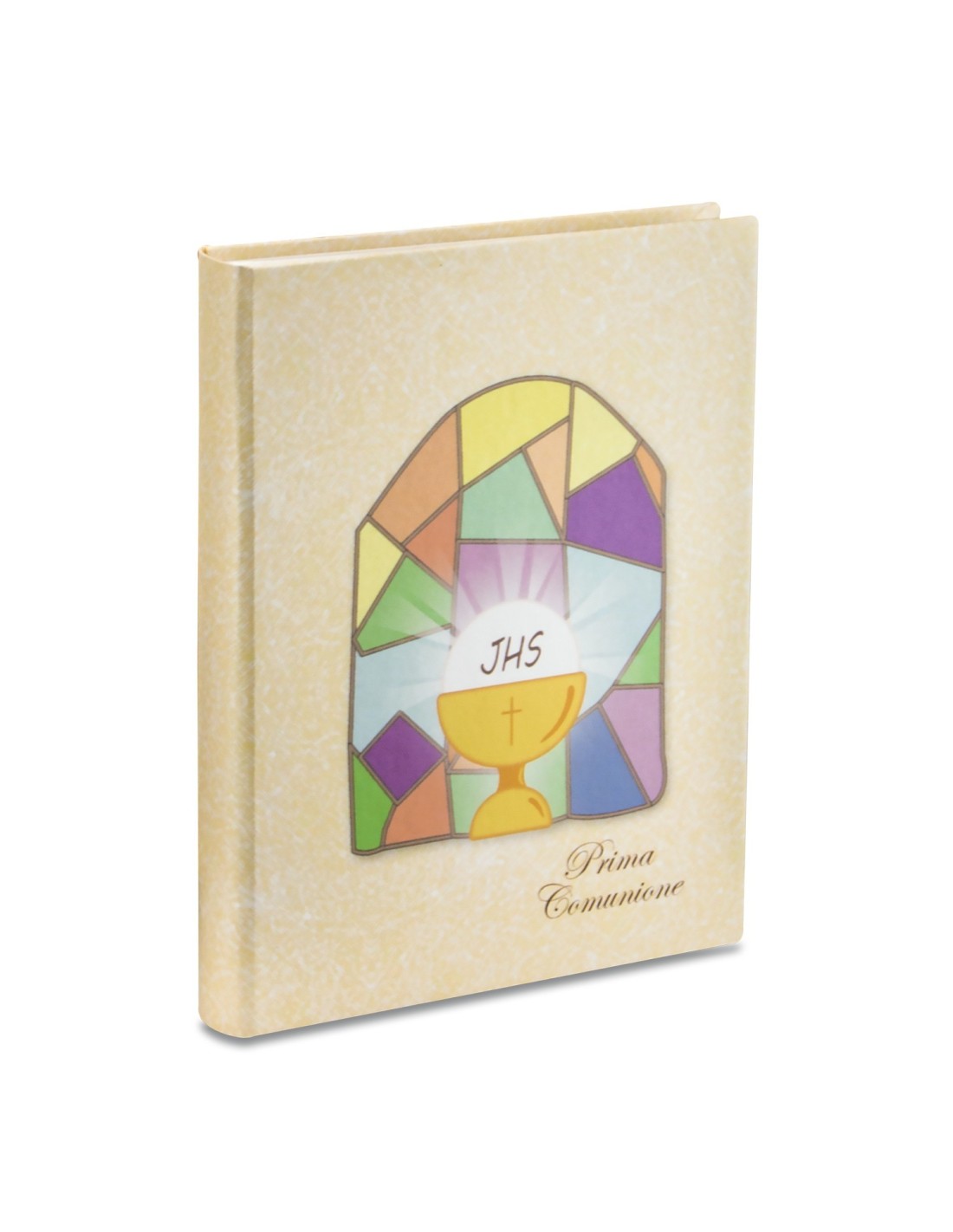 Album 23x30/30fg con pergamino, copertina in carta plastificata stampata COMUNIONE, interno con 4 pagine diario personalizzabili, imballo in scatola regalo