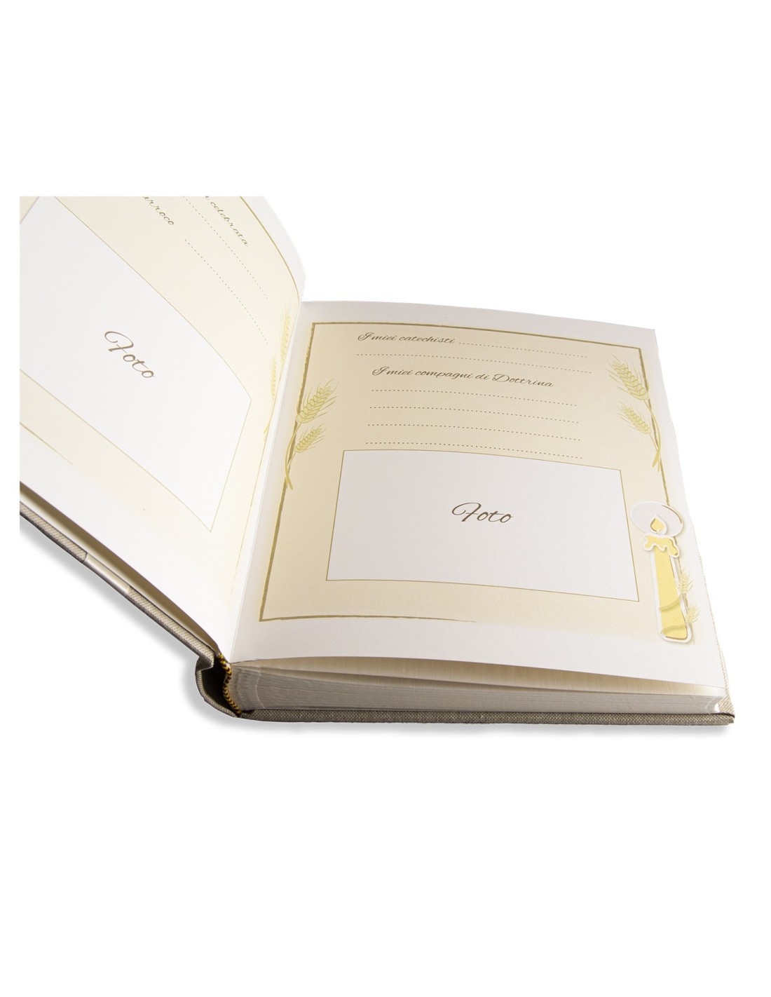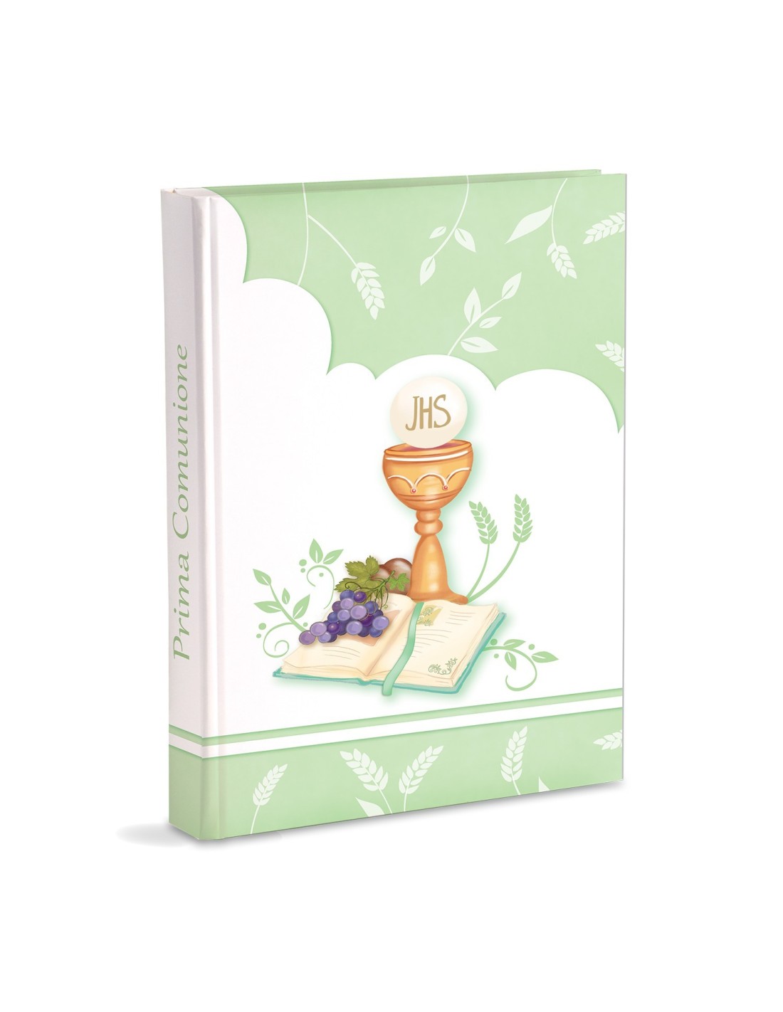 Album 23x30/30fg con pergamino, copertina in carta plastificata stampata COMUNIONE, interno con 4 pagine diario personalizzabili, imballo in scatola regalo