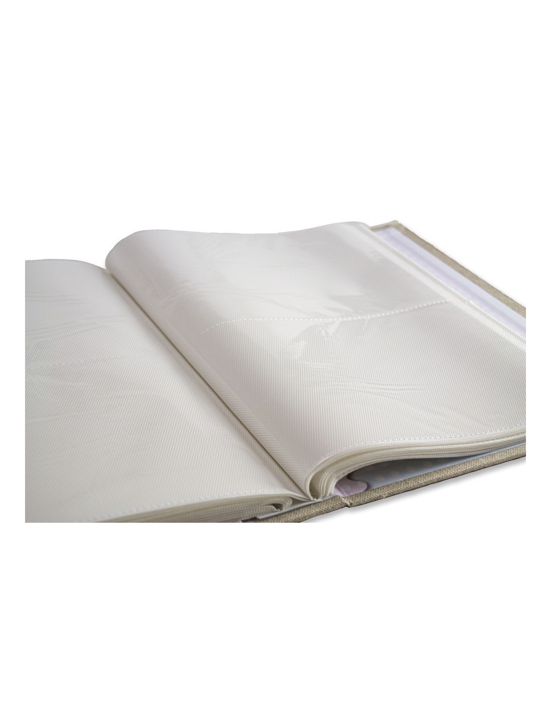 Album a tasca cm 21x28,5, copertina in materiale telato COMUNIONE, 200 foto 13x18, applicazione fascia in lino e nastro bianco TAO COMUNIONE, imballo in scatola regalo
