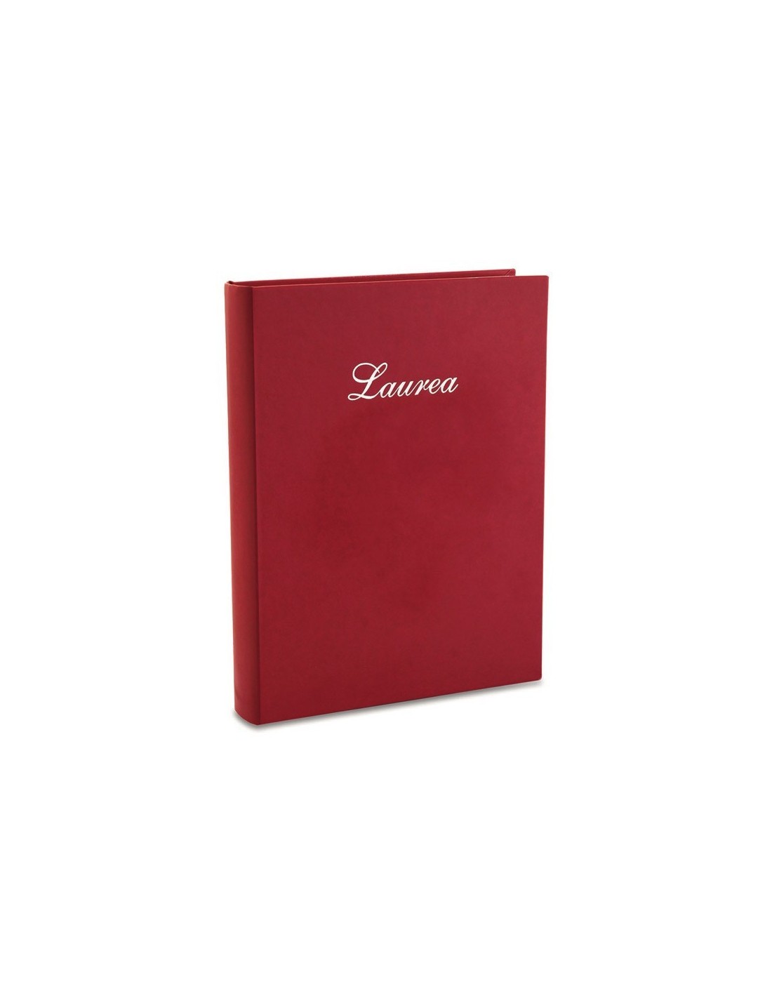 Album 23x30/30fg con pergamino, copertina in similpelle rossa con stampa “Laurea”, interno con 2 pagine diario personalizzabili, imballo in scatola regalo
