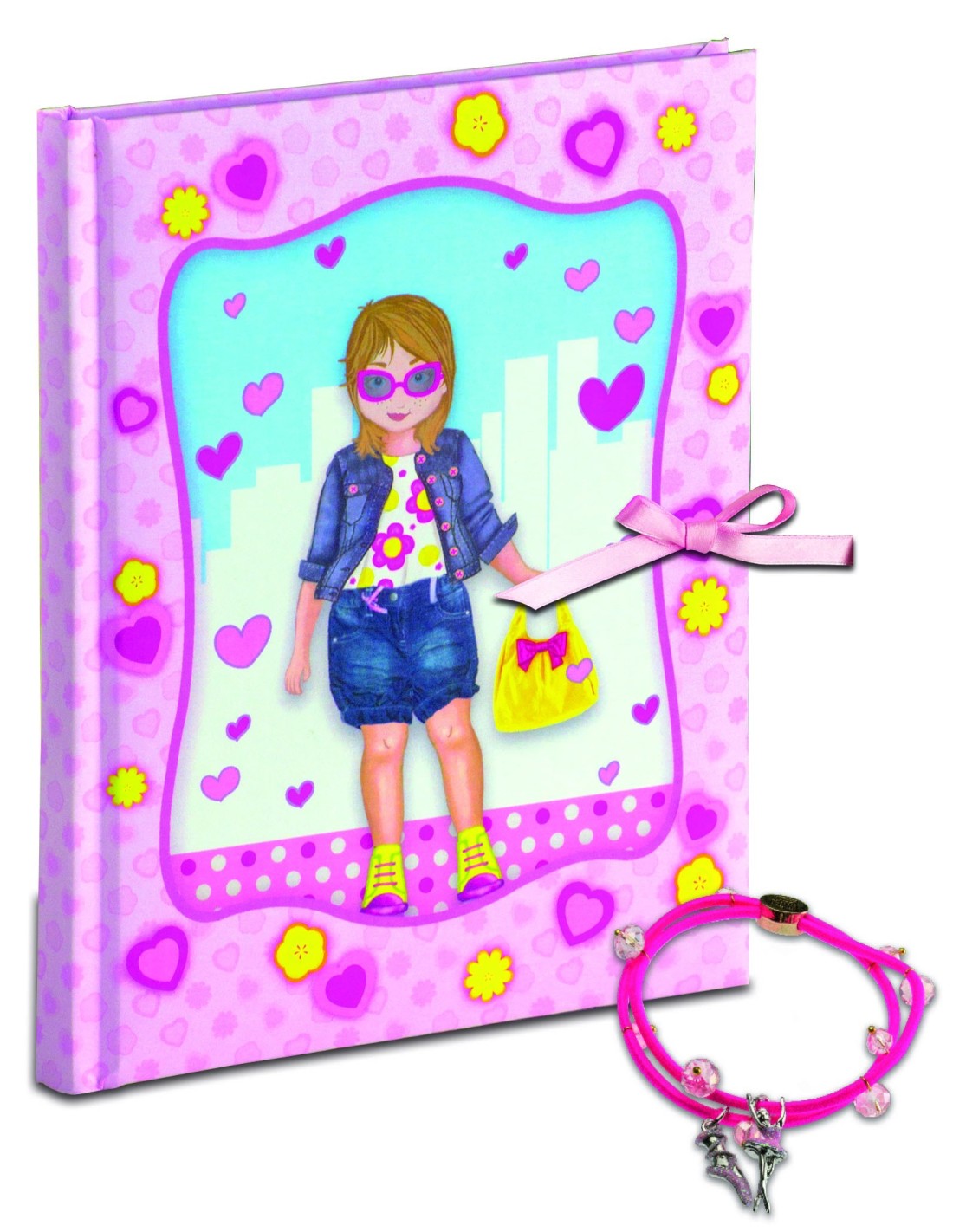 Diario Segreto cm 14,5x18/80fg bianchi, chiusura con nastrino in raso, gadget braccialetto con charms, imballo in scatola regalo