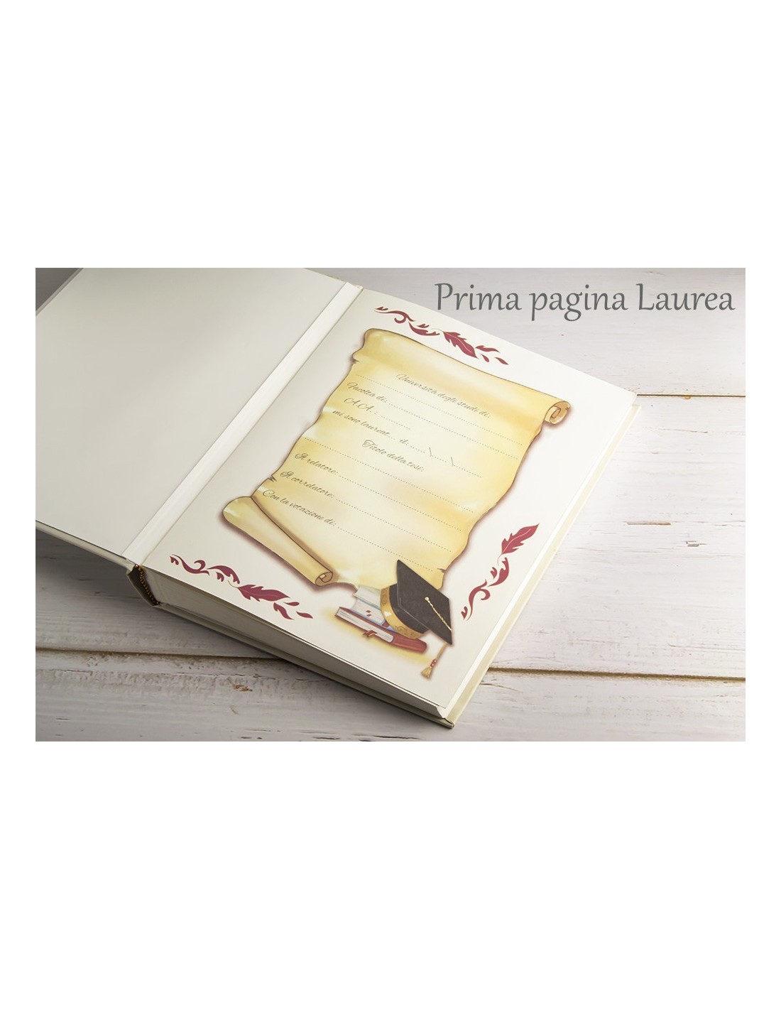 - Le prime pagine sono disegnate ed hanno frasi e didascalie in italiano con spazi per scrivere le informazioni della cerimonia, le restanti sono bianche ed adatte per lo scrapbooking, infatti è possibile scrivere note e pensieri accanto alle foto o decorare a piacimento le pagine.