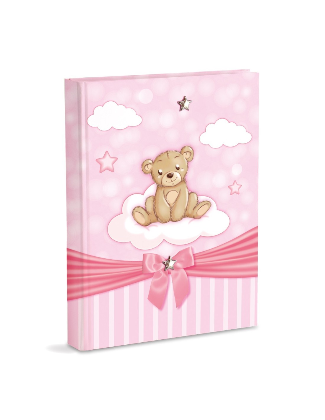 Album 23x30/30fg con pergamino, copertina in carta plastificata stampata, interno con 4 pagine diario personalizzabili, applicazione argento, imballo in scatola regalo